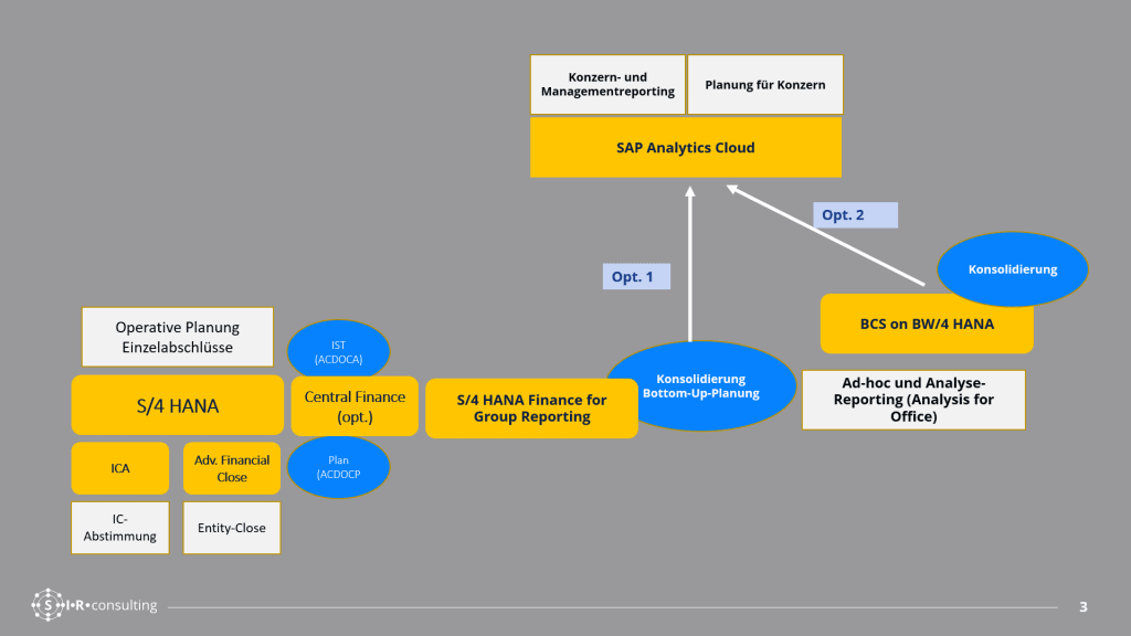 Die SAP Analytics Cloud ermöglicht die Anbindung von S/4-Hana und BW/4-Hana-Systemen sowie von Datenquellen anderer Hersteller, bspw. um Finanzkennzahlen und KPIs zu ermitteln und auszuweisen. Die Daten werden miteinander verknüpft, um so auf aggregierter Managementebene entscheidungsrelevante Abschlusswerte zentral zur Verfügung stellen zu können. So können bspw. Werte (Plan- und Ist-Zahlen) der Finanzkonsolidierung sowohl vom S/4-Hana Finance for Group Reporting als auch von der klassischen Konsolidierungslösung SAP SEM-BCS mit den Reporting-Tools der SAP Analytics Cloud (Real-Time) ausgewiesen werden. Auch eine Überführung von Abschlusszahlen bspw. für Zwecke der Weiterverarbeitung im Zuge eines Corporate-Planning-Prozesses in die SAC ist möglich.