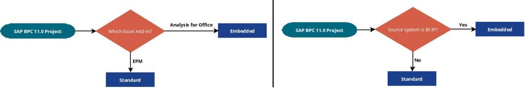 Once we are decided for the solution SAP BPC 11.0, it is time to decide the model, which means Standard or Embedded. Both are included in the tool. There isn’t a formula to decide it, but generally when the customer wants an integrated planning tool to manage it in the decentralized way, we should choose Embedded. On the other hand, if the customer wants that the users are autonomous creating dimension members and modifying the model, we should choose the Standard one. The good news here is that we can have projects in both versions (Embedded and Standard) in the same system. There are some other things to take in consideration in order to choose the version, like the following: