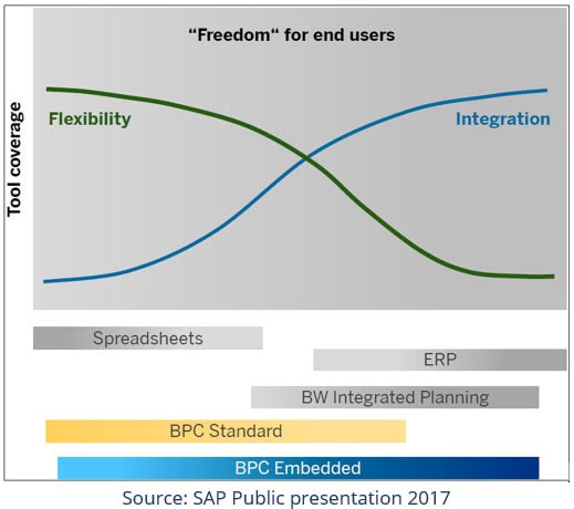 With SAP BPC 11 we will find the balance between Flexibility and Integration, which means the tool covers many functionalities that will give the “Freedom” for the end users, but also the possibility of a high integration.