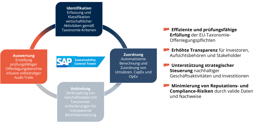 The SCT supports companies in recording and classifying relevant activities according to the requirements of the EU Taxonomy. It thus enables consistent and transparent disclosure of taxonomy-relevant key figures.